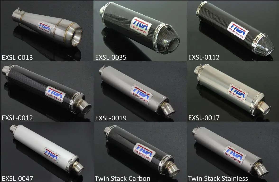 The pipe set can be used with any silencer with a 2 inch internal diameter bore which is held in place by springs for ease of fitment and removal. TYGA provide the following compatible silencers which can either be ordered separately with this system or together as a set.