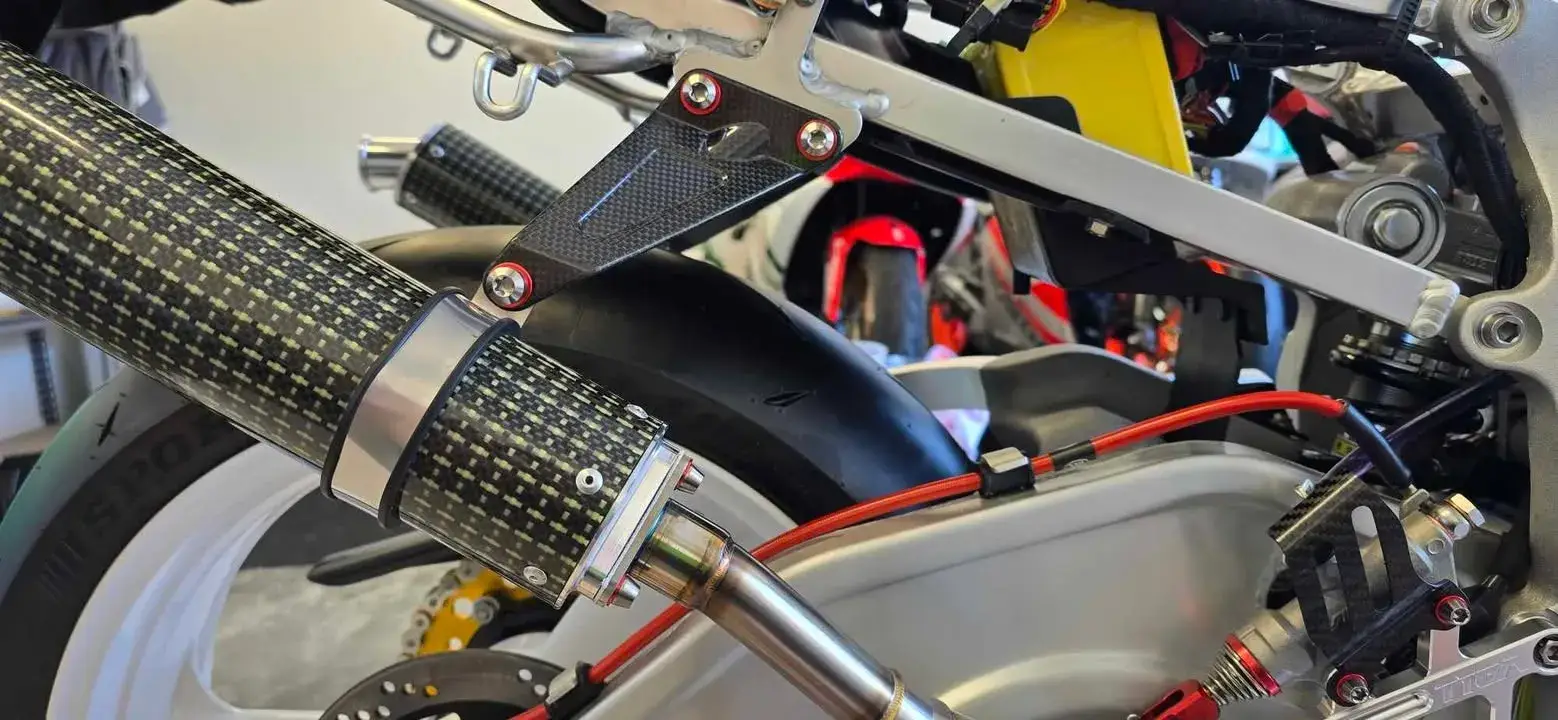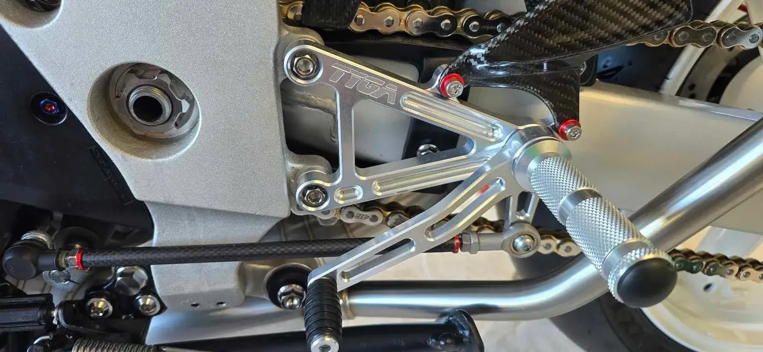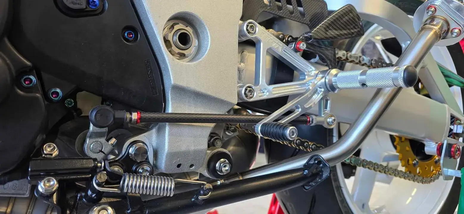 | Rear sets with the upgrade of a carbon shift rod. |